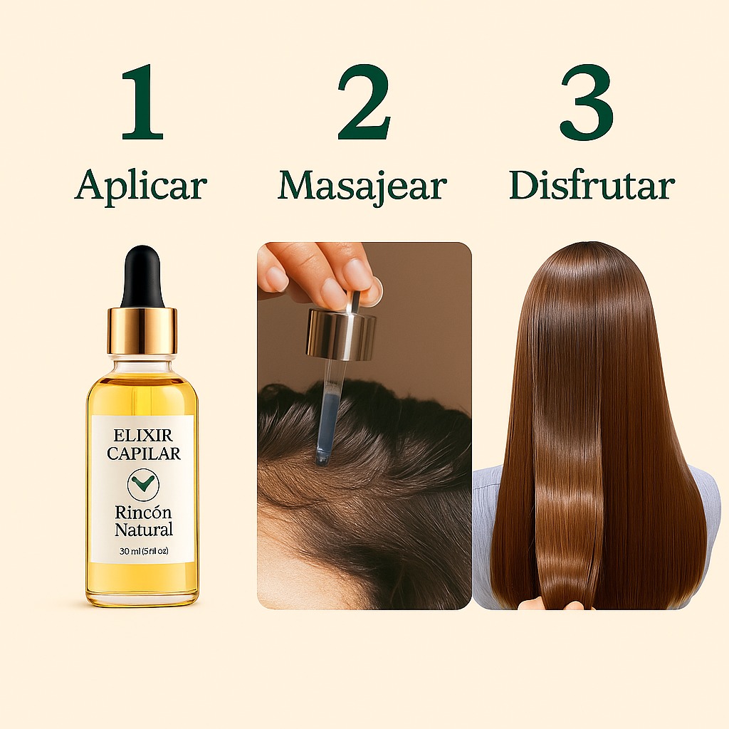 Aplicar de 3 a 5 gotas en el cuero cabelludo y masajear suavemente.
